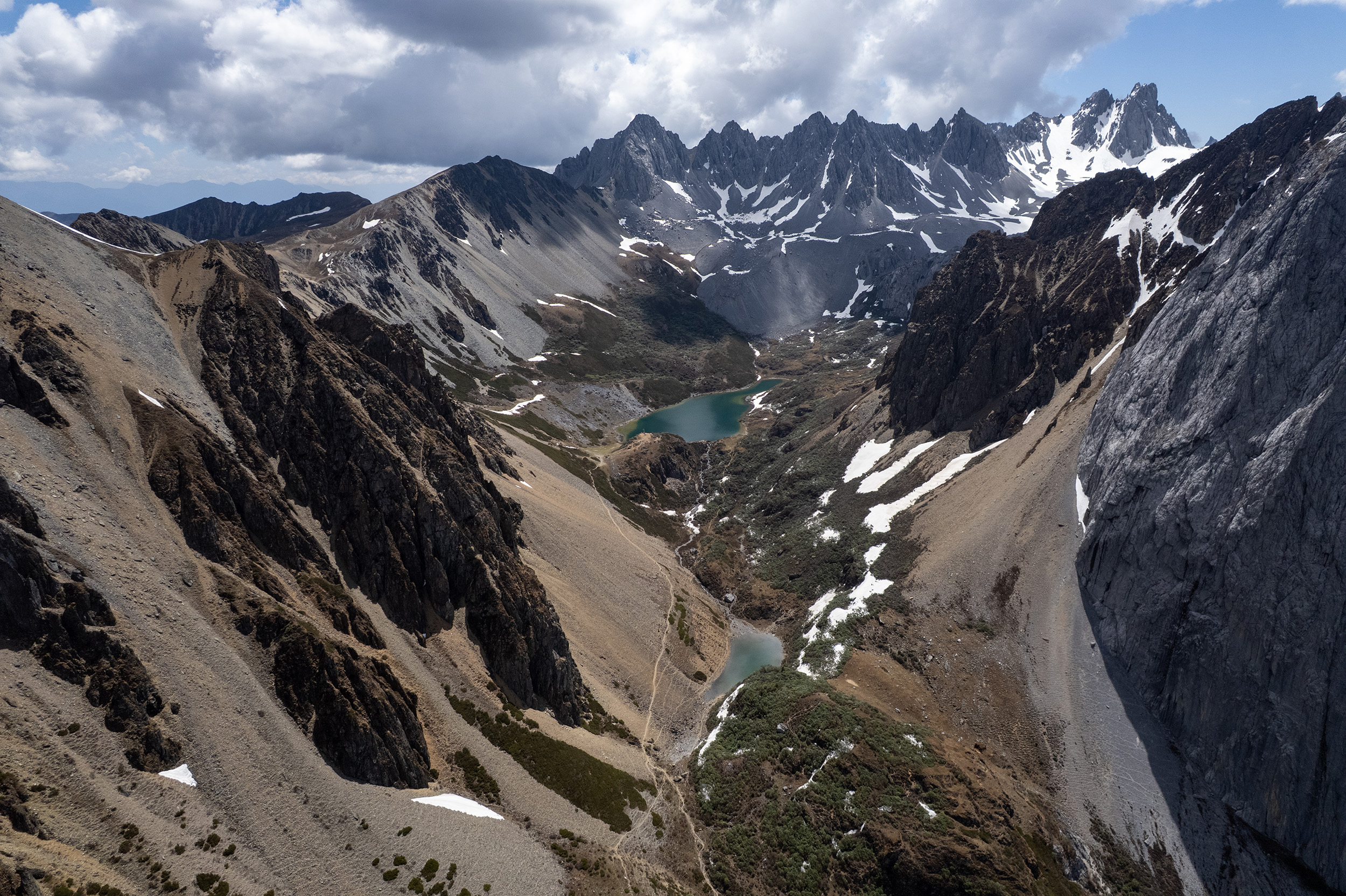 The climax of the hike is the reveal of Abuji Lake, a pristine body of water nestled at 4,200 meters (roughly 13,000 feet) and surrounded by rugged, snow-capped peaks. Reaching the lake feels like a triumph, though the high-altitude environment remains unpredictable; as the Drone and Phone team experienced, clear morning skies can rapidly give way to afternoon hailstorms. The return descent follows the same steep path, providing expansive views of the valley below and serving as a reminder of the importance of early starts in Yunnan to avoid late-day weather shifts. While physically demanding, the hike is hailed as an “absolute stunner” that captures the raw, alpine beauty of Northern Yunnan in a single, spectacular day.
