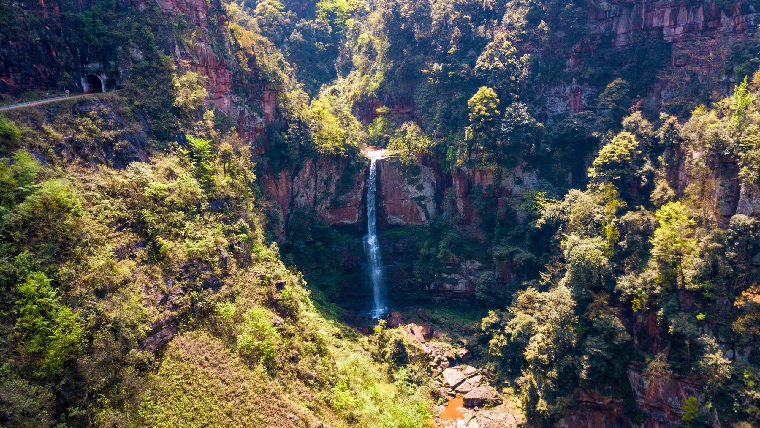 6. From the mountain platform, descend to the main road in the valley. Walking north along the main road will take you to the zoo. After passing through the panda enclosure, you enter a tunnel and then the zoo area, where you can see many animals like tiger and bears.